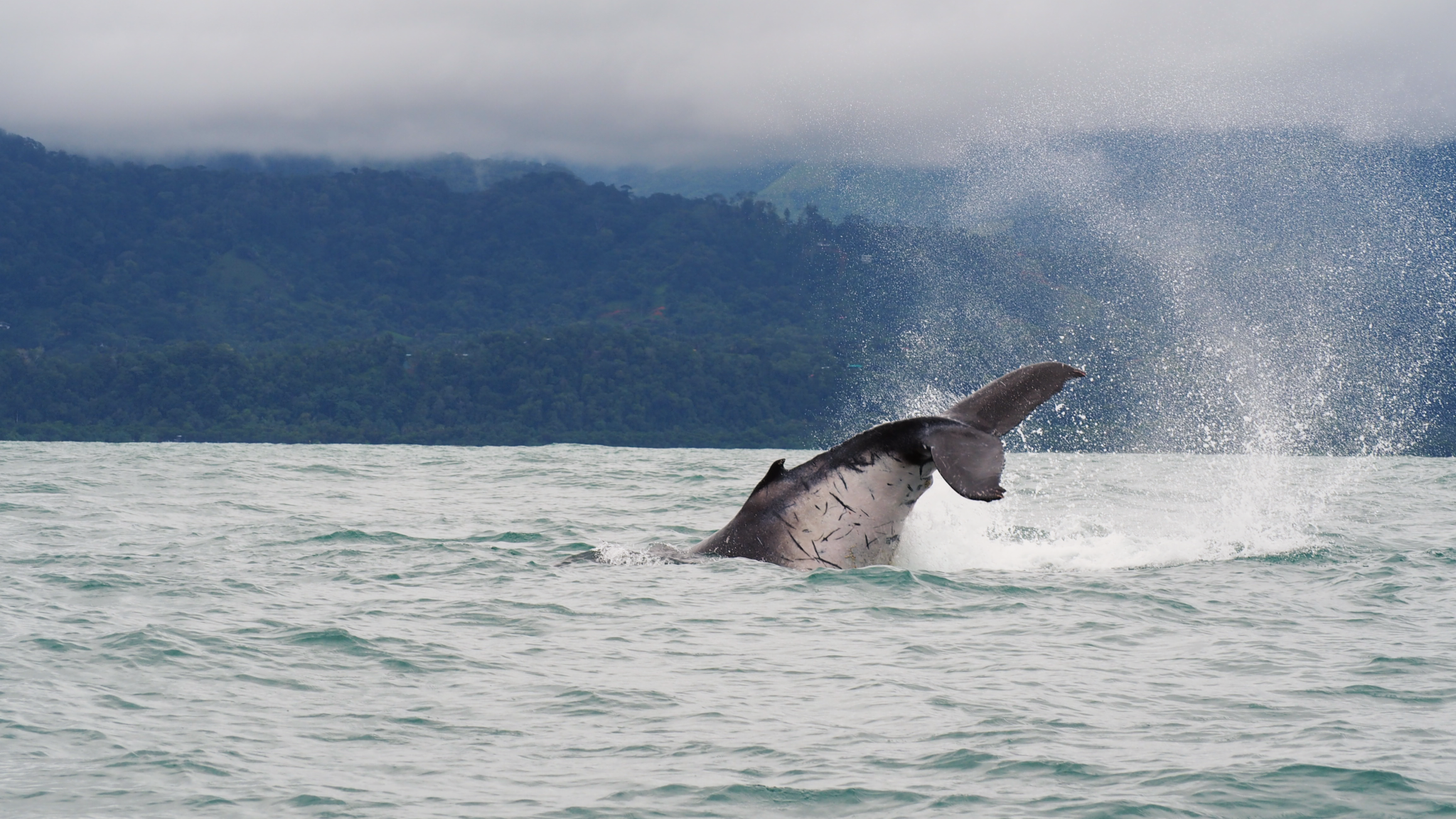 The whales you can spot in Costa Rica are humpback whales. These baleen whales can reach lengths of 12 to 16 meters and weigh around 25 to 30 thousand kilograms. The humpback gets its name from the small hump on its dorsal fin. If you listen closely, you can hear this whale “sing.”